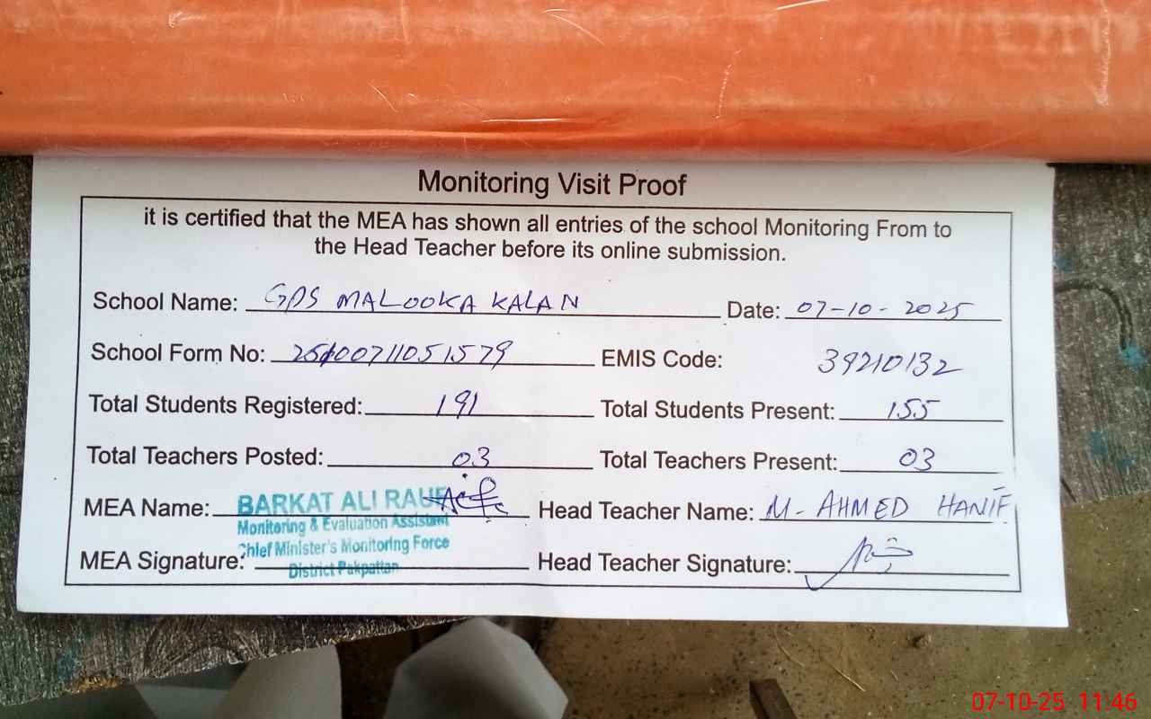 | EMIS Code: 39210132 | Name of School: GPS MALOOKA KALAN | |||