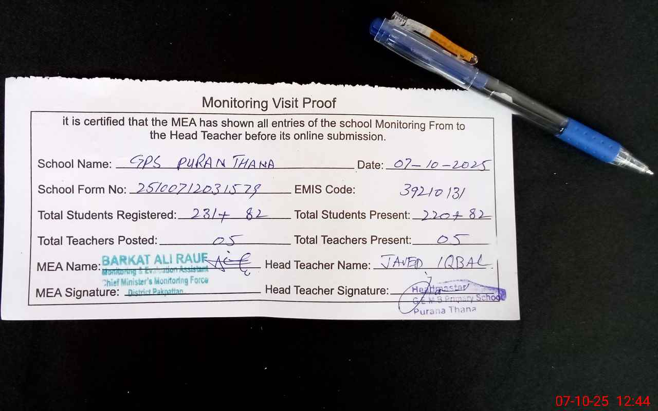 | EMIS Code: 39210131 | Name of School: GPS PURANA THANA | |||