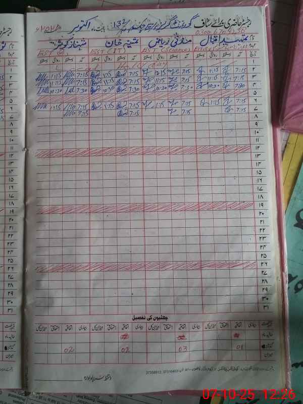 | Name: MU**** SU**** Designation: (School Headmaster's/Headmistress's) S.S.T.(G) Phone/Cell Number: 03**** |