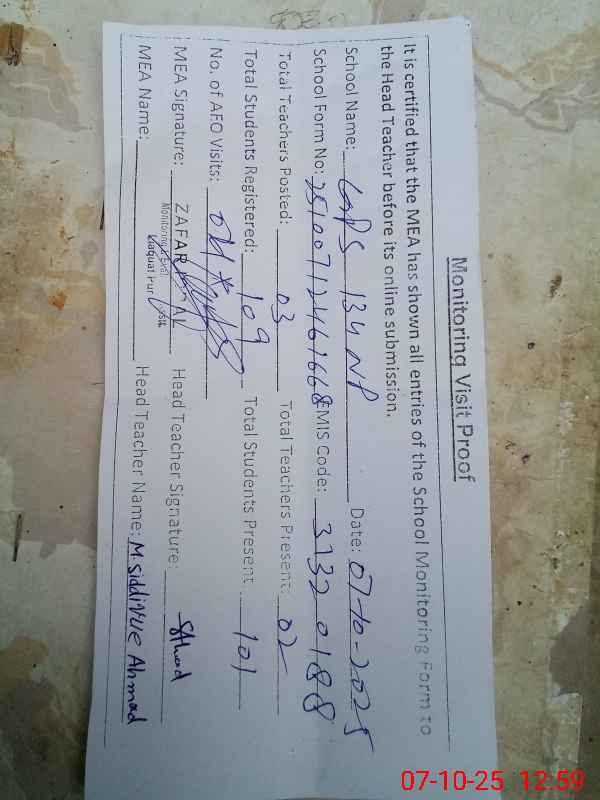 | EMIS Code: 31320188 | Name of School: GPS CHAK 132/NP | |||