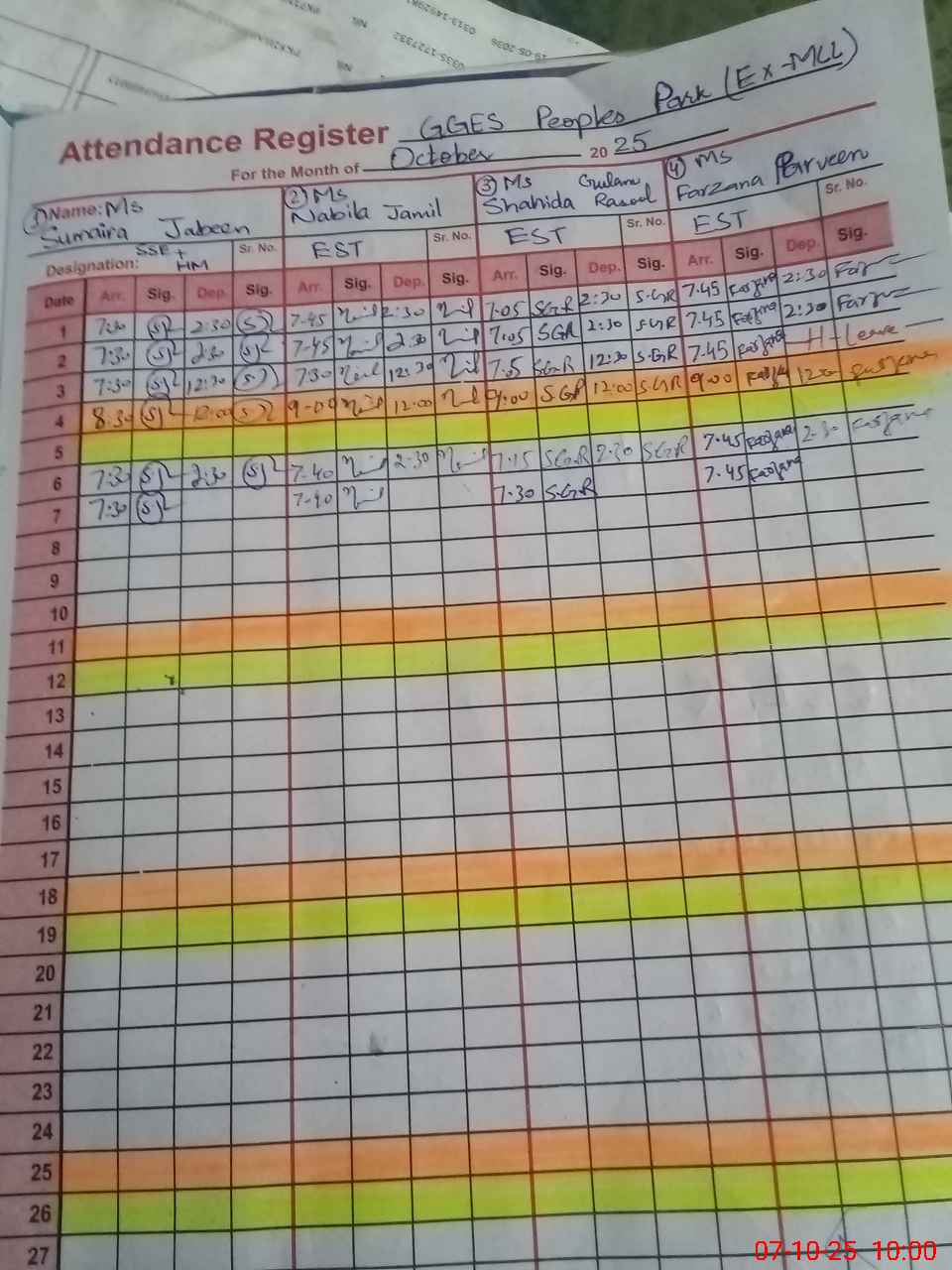 | Monitoring Date: 07-10-2025 | Start Time: 07-10-2025 09:39 AM | End Time: 07-10-2025 10:05 AM | Name of MEA: AB**** GH**** | |