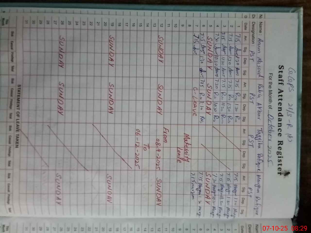 | 31**** | Ta**** Ra**** | PST | Regular | 3 | 0 | 0 | 0 | 0 | 0 | 0 | 0 | 3 | Absent (Un-Authorized) |