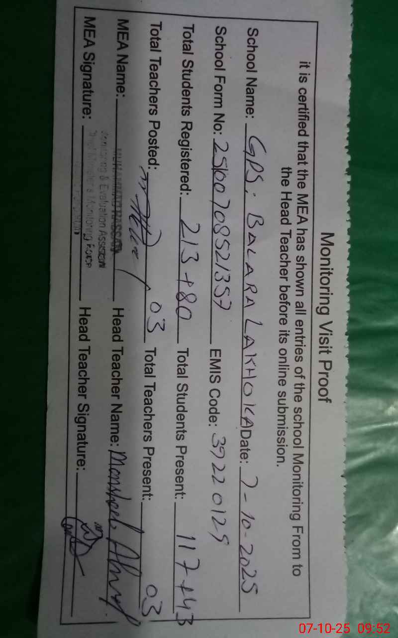 | EMIS Code: 39220129 | Name of School: GPS BALARA LAKHOKA | |||