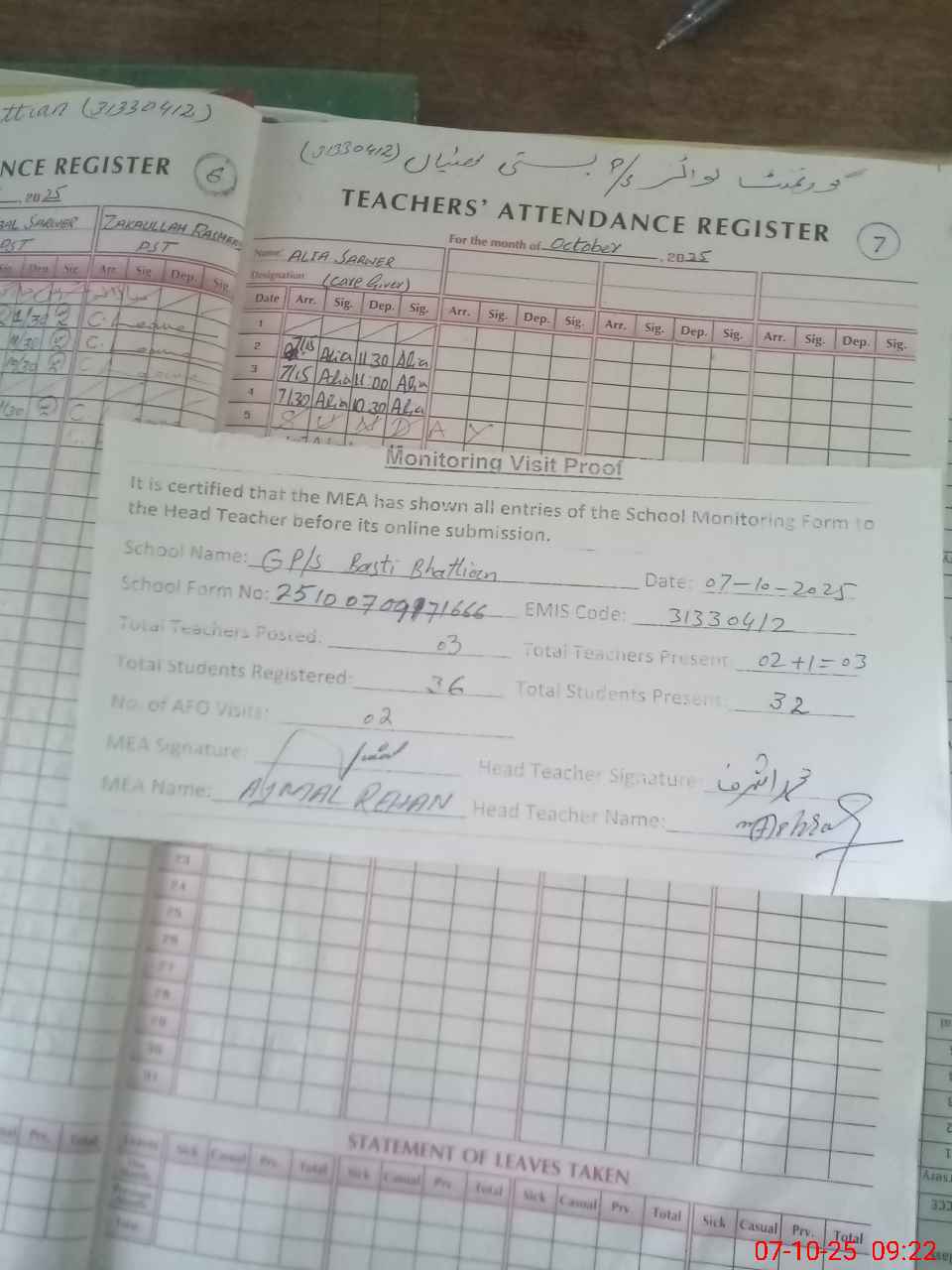 | EMIS Code: 31330412 | Name of School: GPS BASTI BHUTTIAN | |||