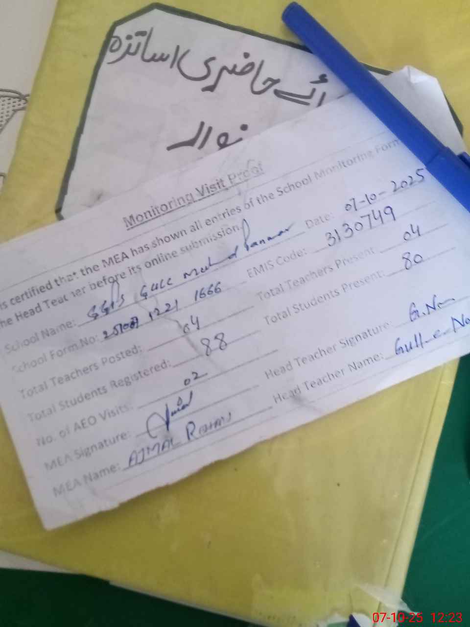 | EMIS Code: 31330749 | Name of School: GGPS GUL MUHAMMAD PANWAR | |||