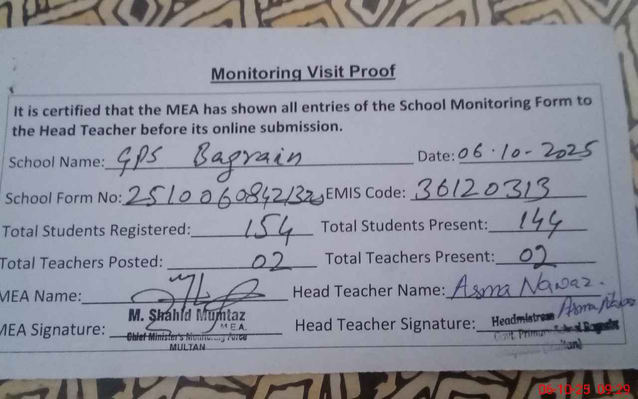 | EMIS Code: 36120343 | Name of School: GPS BAGRAIN | |||