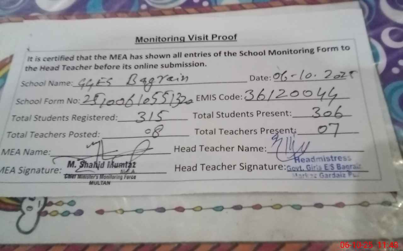 | EMIS Code: 36120044 | Name of School: GGES BAGRAIN SHUJABAD | |||