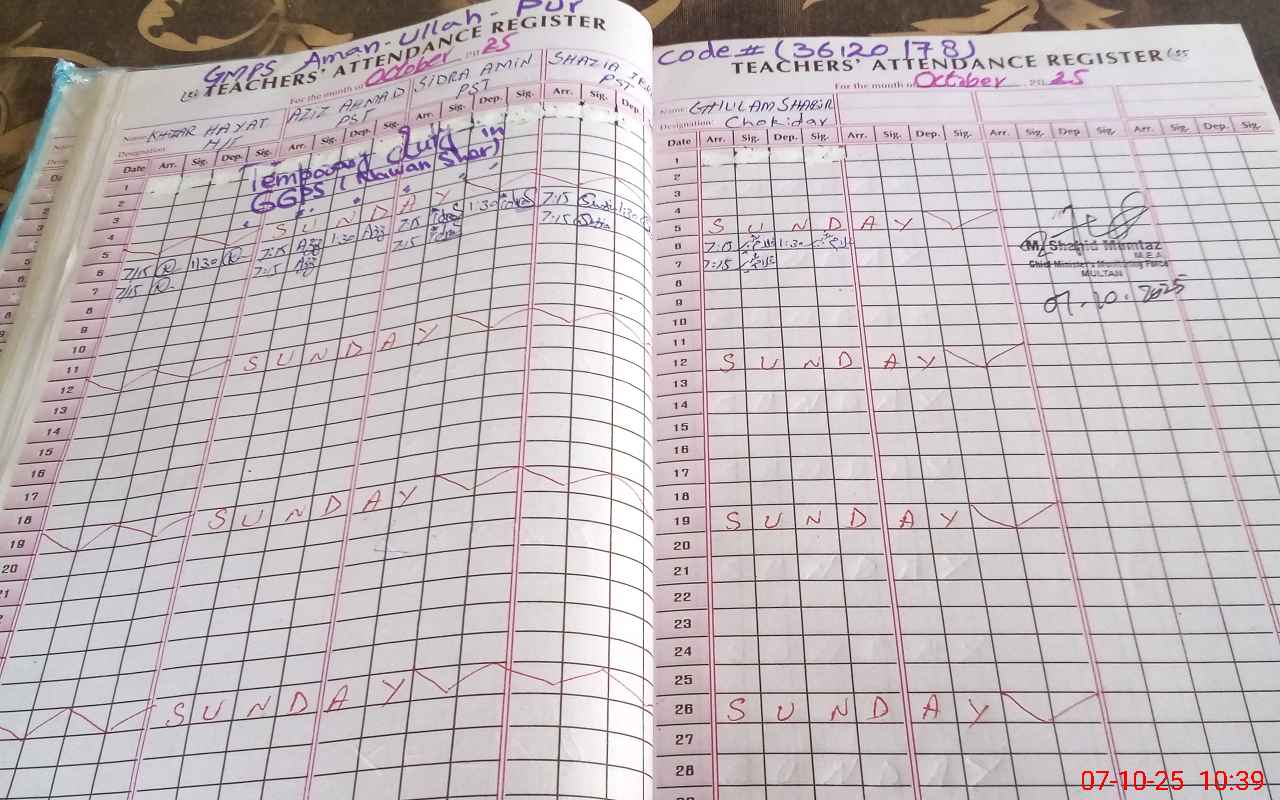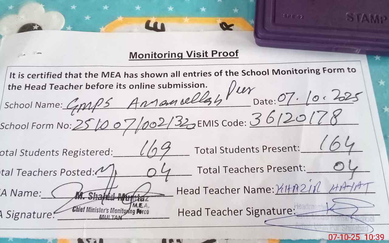 | EMIS Code: 36120178 | Name of School: GMPS AMAN ULLAH PUR SHUJABAD | |||