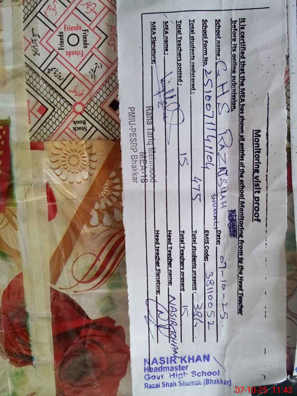 | EMIS Code: 38110052 | Name of School: GHS RAZAI SHAH SHUMALI | |||