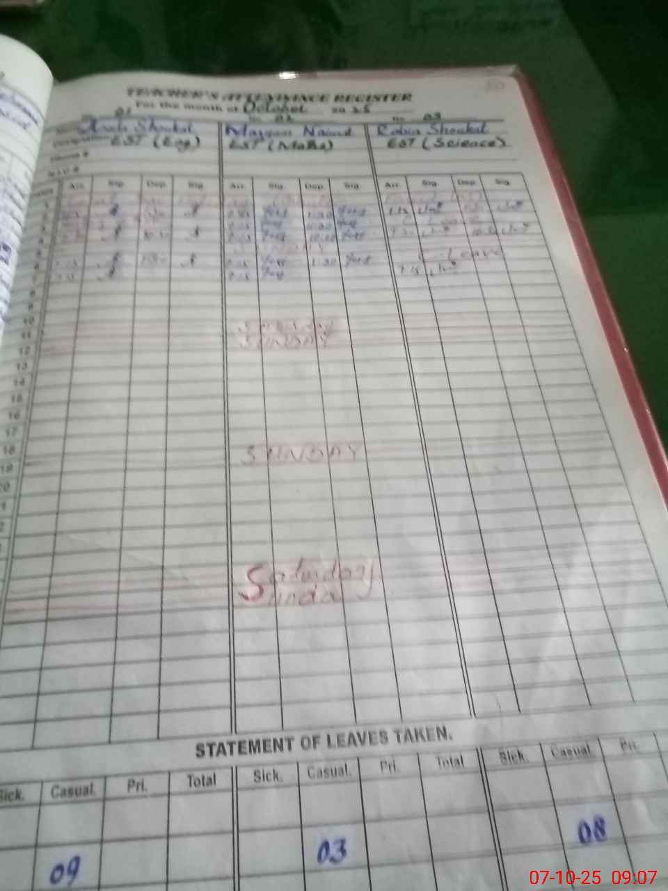 | Monitoring Date: 07-10-2025 | Start Time: 07-10-2025 09:04 AM | End Time: 07-10-2025 09:40 AM | Name of MEA: Gh**** Ra**** | |