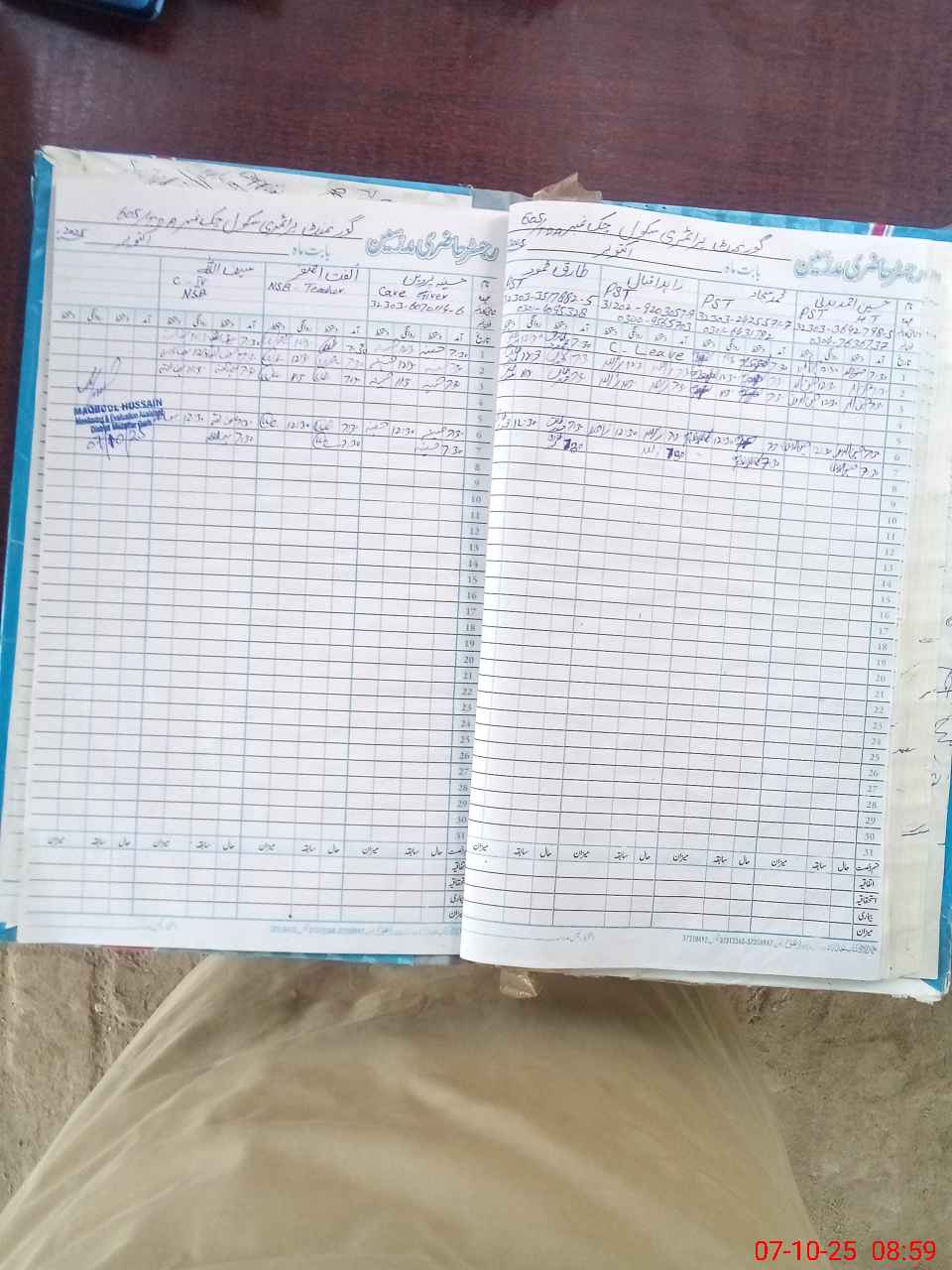| Name: HU**** AH**** Designation: (School Headmaster's/Headmistress's) PST/PTC/JV Phone/Cell Number: 03**** |