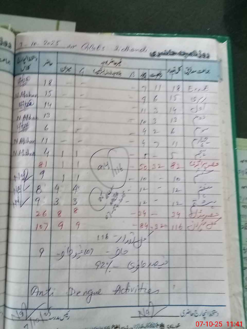 | Total Students Present | 18 | 0 | 15 | 9 | 8 | 6 | 8 | 4 | 9 | 8 | 9 | 94 | ||||