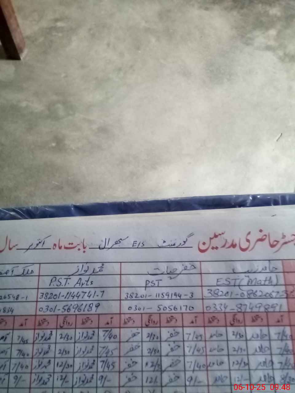 | Name: Sa**** Ha**** Designation: (School Headmaster's/Headmistress's) Est Phone/Cell Number: 03**** |