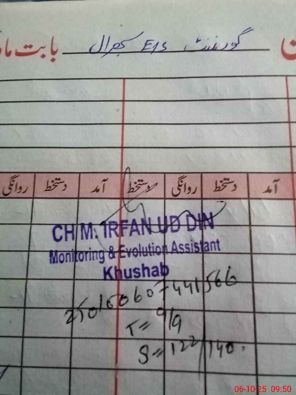 | PP No.: 82 | NA No.: 93 | Mauza: SABHRAL | UC Name: ANGA | UC No.: 2 |