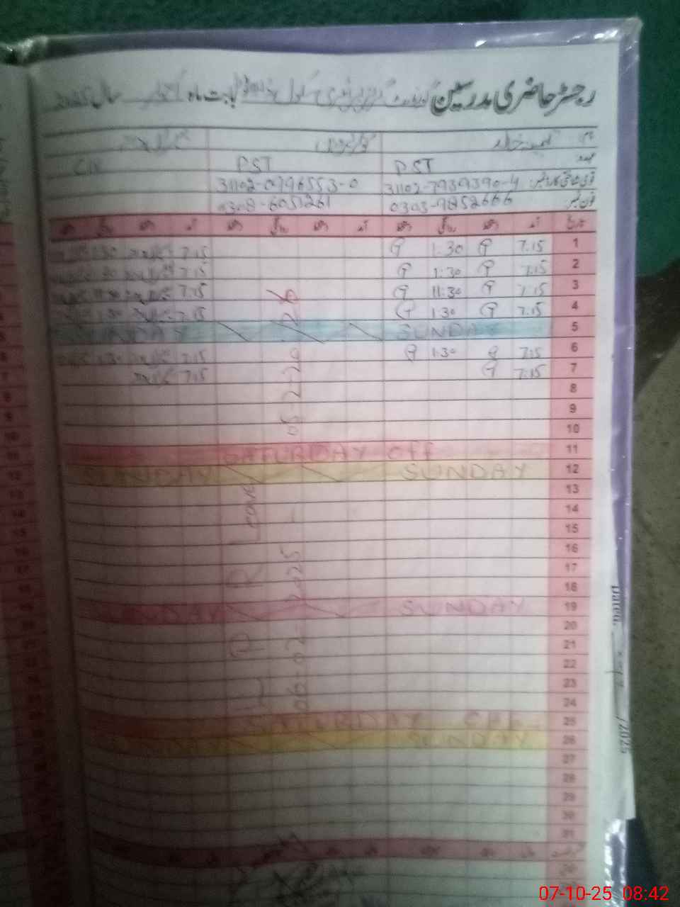 | CNIC | Full Name | Designation | R/C | Absence During Last Calender Month |