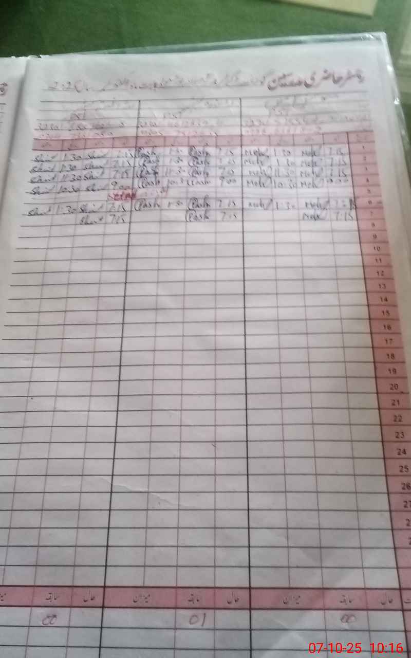 | CNIC | Full Name | Designation | R/C | Absence During Last Calender Month |