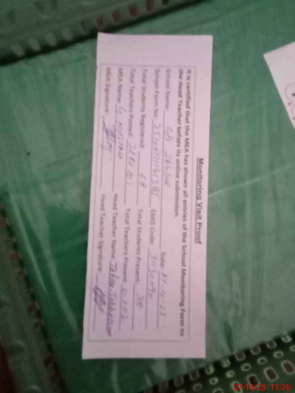 | Certified that this School was Inspected by the Undersigned MEA/DMO Today and the Information Stated Above is as Per Record. | |||||