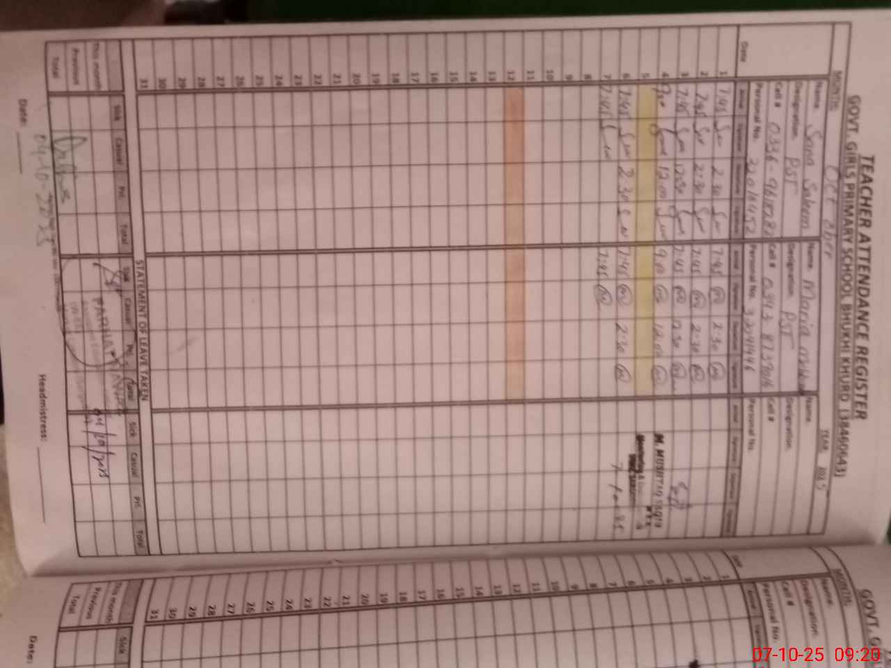 | Name: SA**** SA**** Designation: (School Headmaster's/Headmistress's) PST Phone/Cell Number: 03**** |