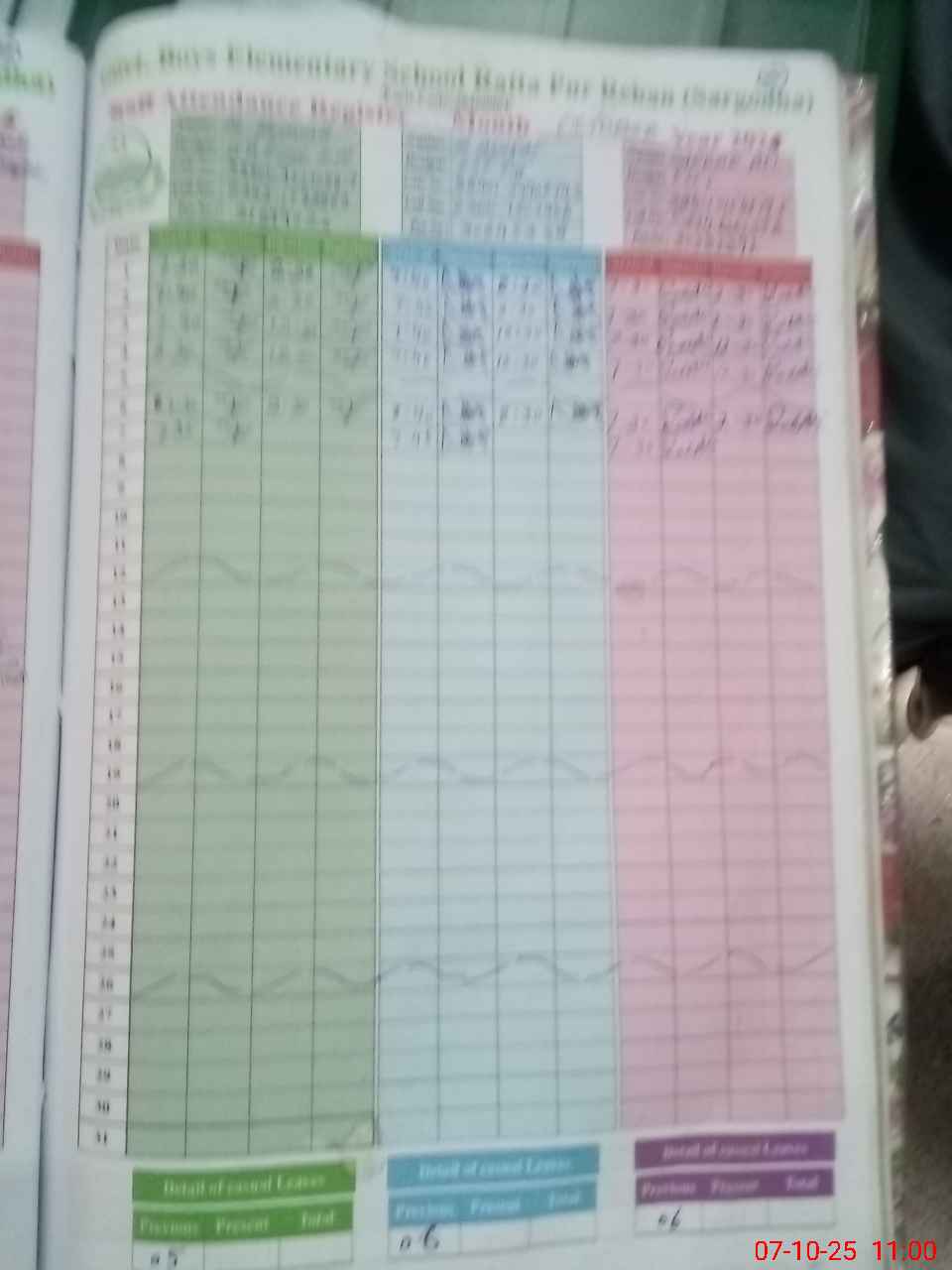| No. of Students Present - Male | 0 | 0 | 48 | 33 | 29 | 30 | 37 | 35 | 34 | 35 | 42 | 323 | ||||