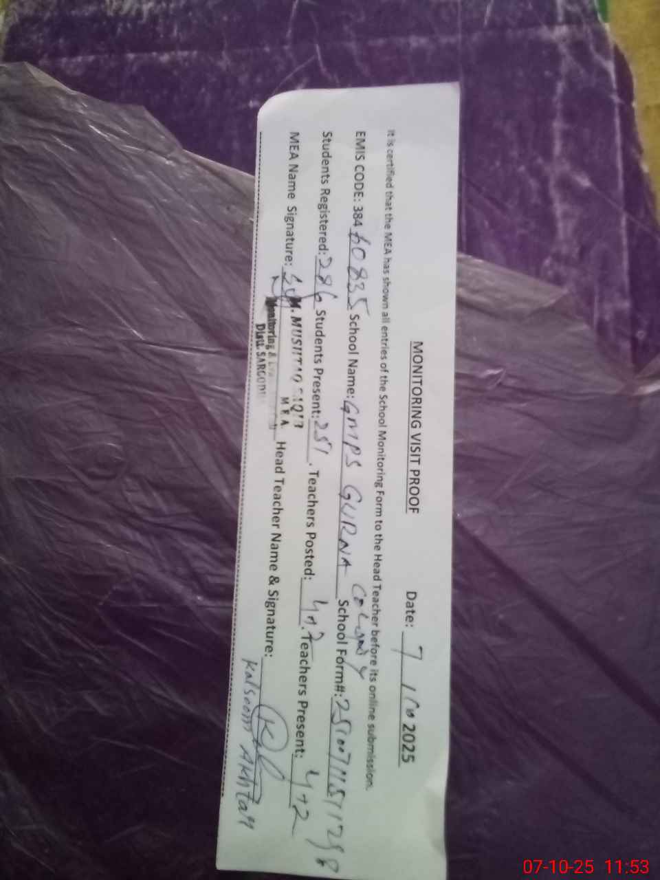 | EMIS Code: 38460835 | Name of School: GMPS GURNA COLONY PO LAKSIAN | |||