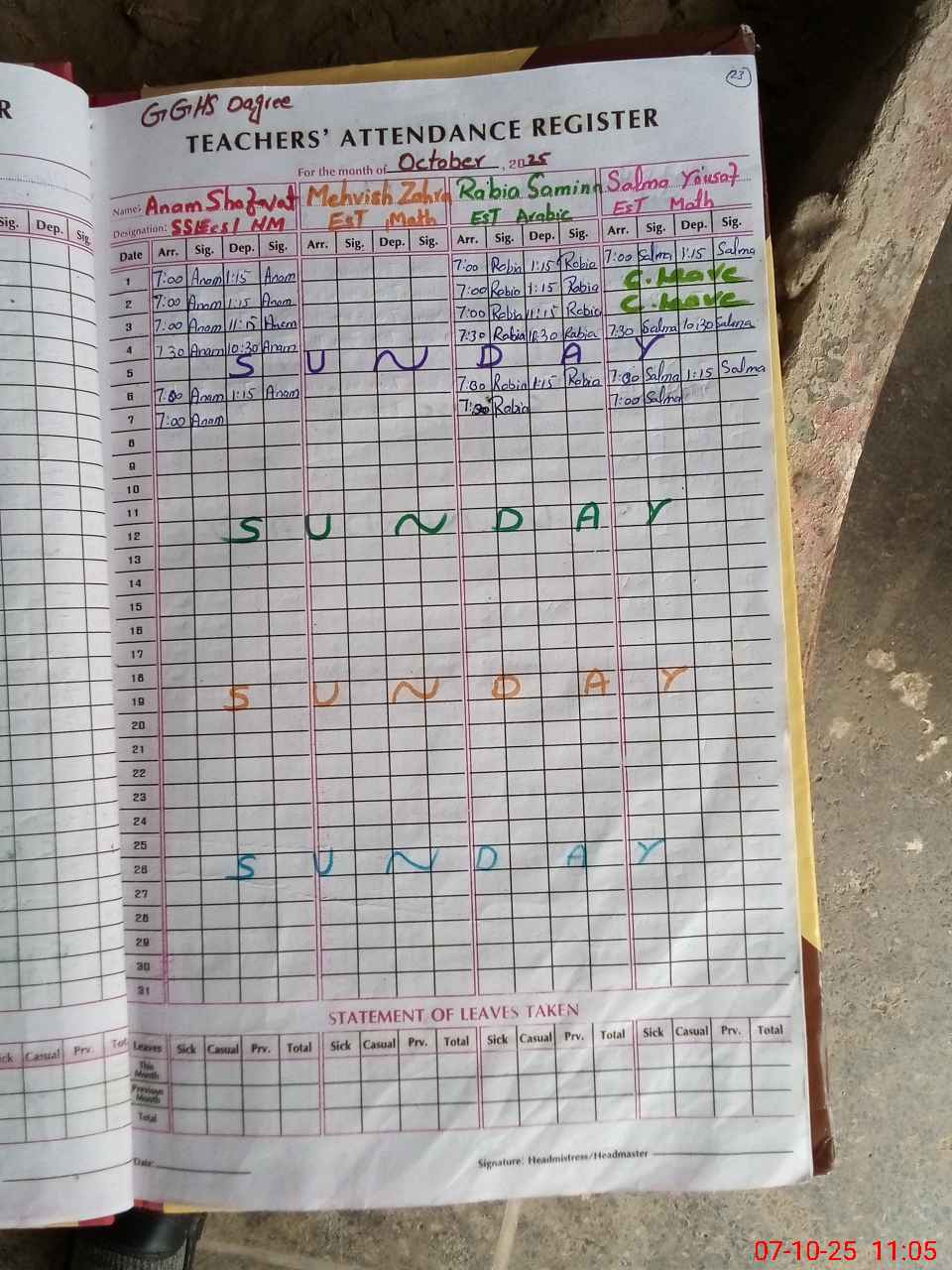 | 33**** | Sa**** Al**** | PST | Regular | 1 | 0 | 0 | 0 | 0 | 0 | 0 | 0 | 1 | Casual |