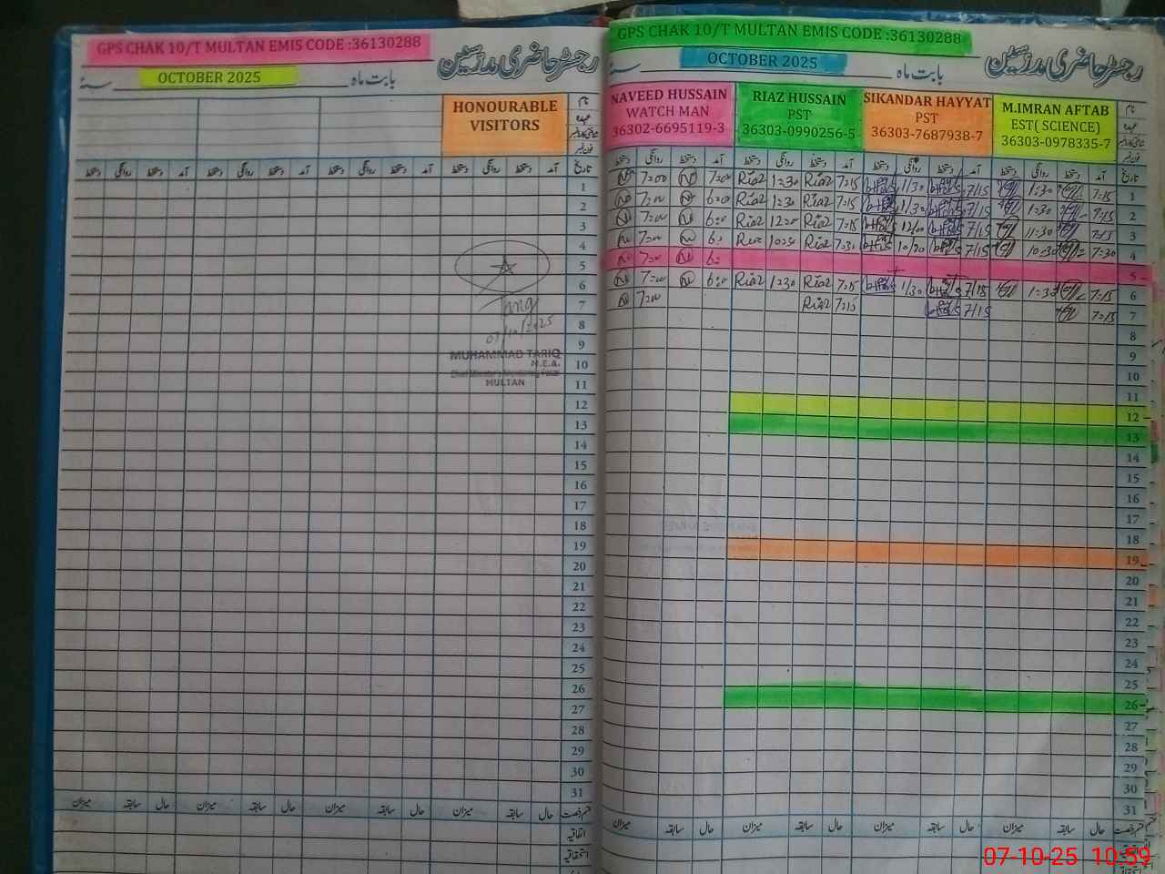| EMIS Code: 36130288 | Name of School: GPS CHAK NO. 10 T MULTAN | |||