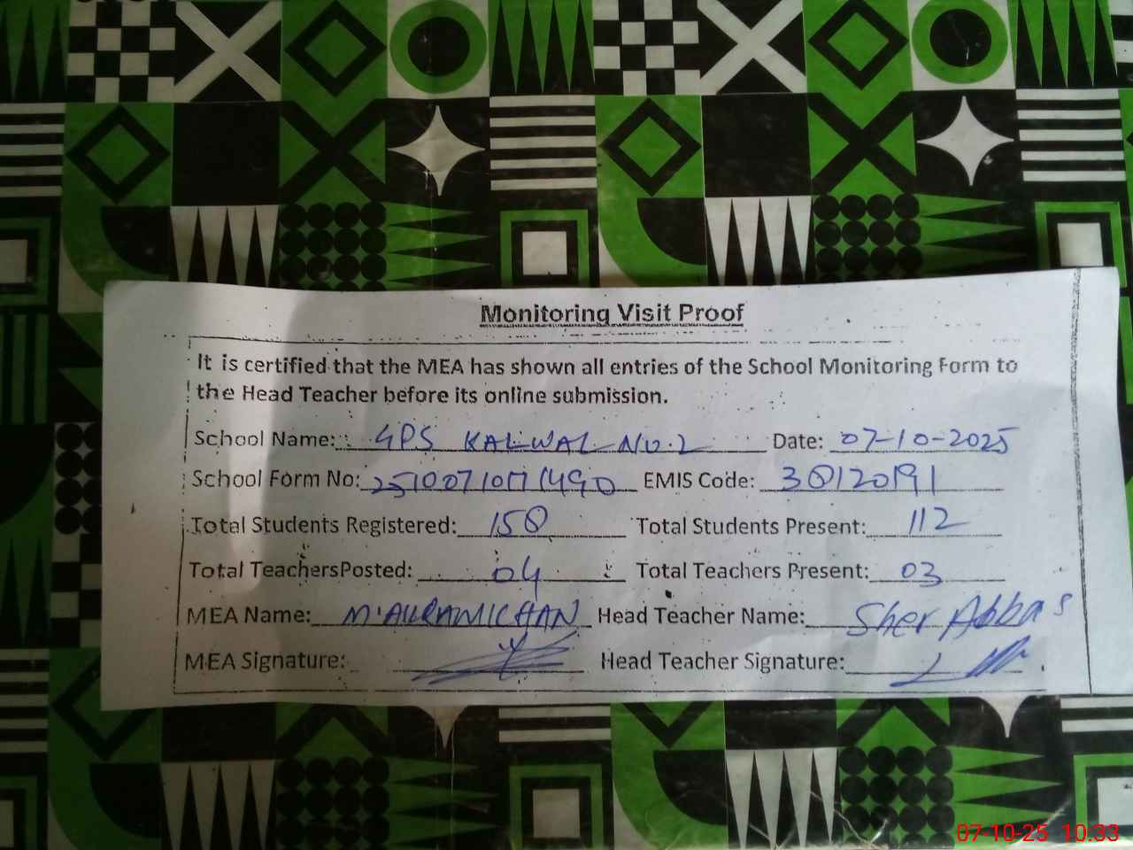 | EMIS Code: 38120191 | Name of School: GPS KALWAL NO. 2 | |||