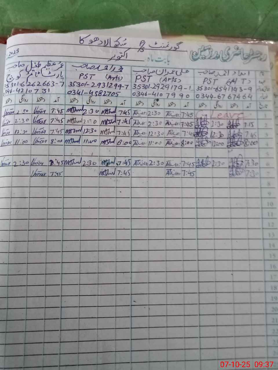| Name: MO**** LA**** SH**** Designation: (School Headmaster's/Headmistress's) EST Phone/Cell Number: 03**** |