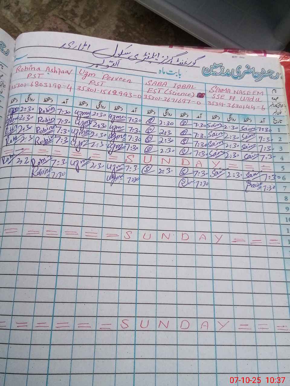 | CNIC | Full Name | Designation | R/C | Absence During Last Calender Month |
