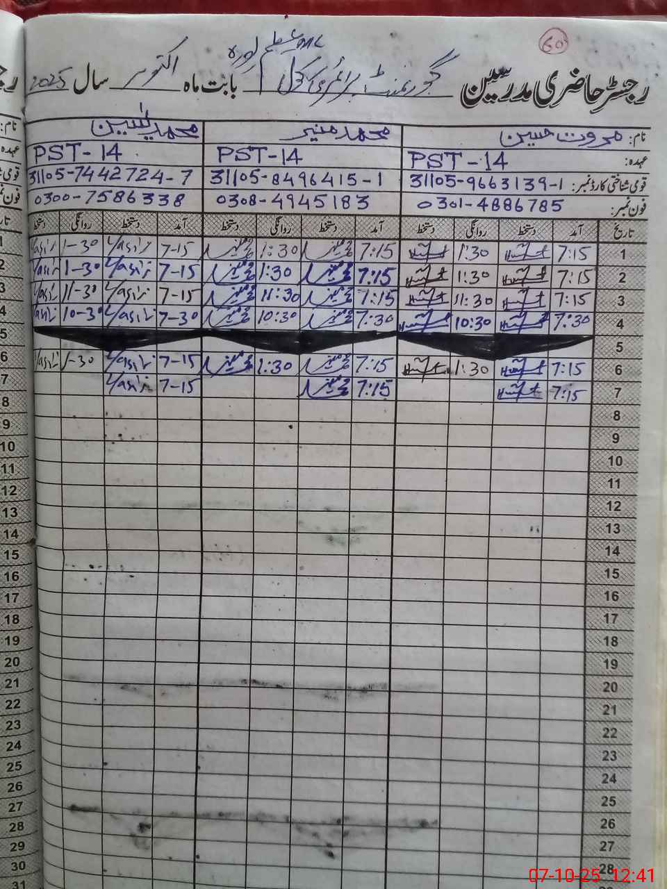 | Name: MU**** HU**** Designation: (School Headmaster's/Headmistress's) PST Phone/Cell Number: 03**** |