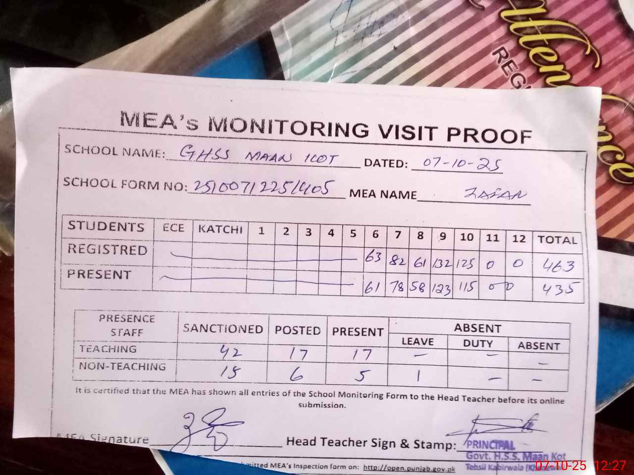 | EMIS Code: 36410027 | Name of School: GHSS MAAN KOT, NAWAN SHEHR | |||