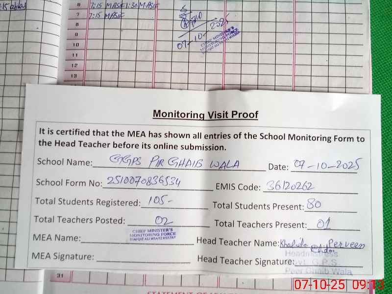 | EMIS Code: 36120262 | Name of School: GGPS PIR GAIB WALA SHUJABAD DISTT. MULTAN | |||