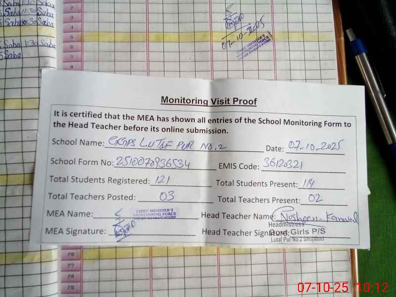 | EMIS Code: 36120321 | Name of School: GGPS LUTAF PUR NO 2 | |||