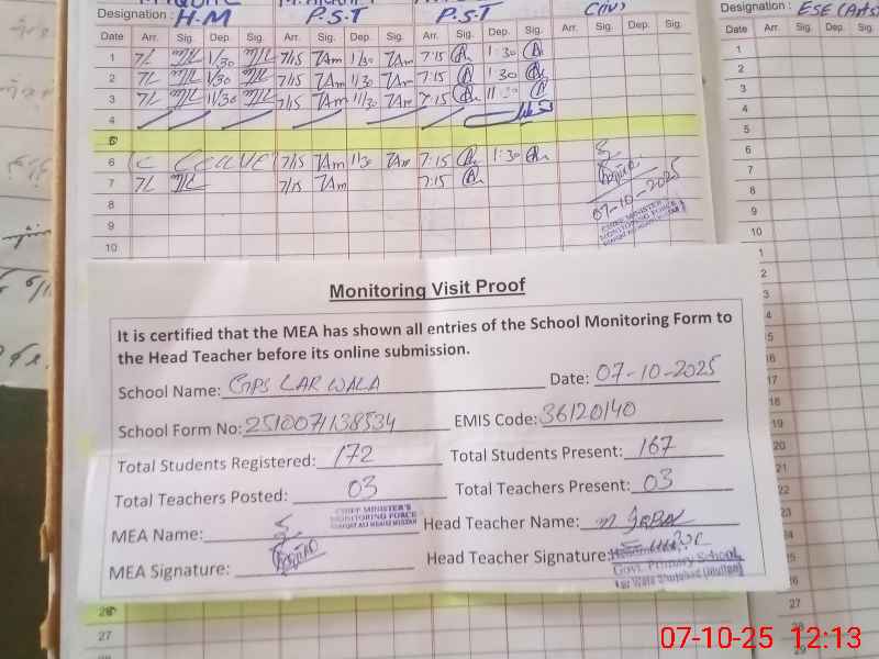 | EMIS Code: 36120141 | Name of School: GPS LAR WALA SHUJA ABAD | |||