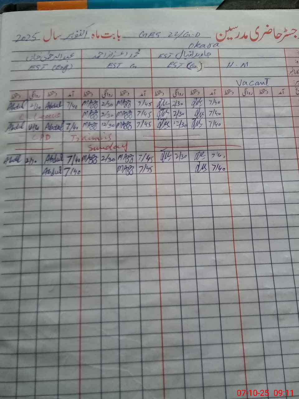 | CNIC | Full Name | Designation | R/C | Absence During Last Calender Month |