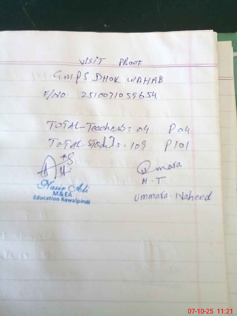 | EMIS Code: 37360229 | Name of School: GMPS DHOK WAHAB | |||