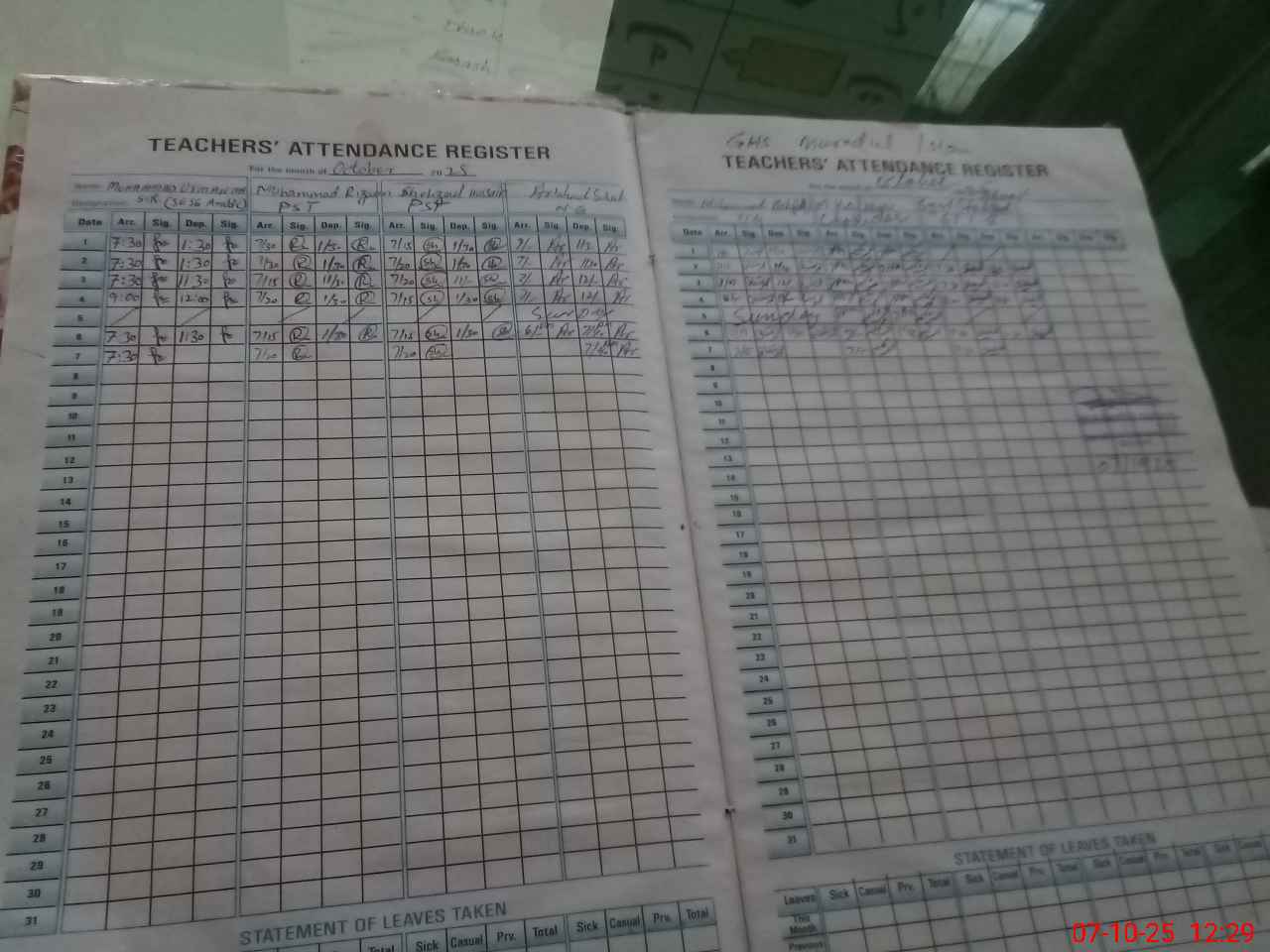 | CNIC | Full Name | Designation | R/C | Absence During Last Calender Month |