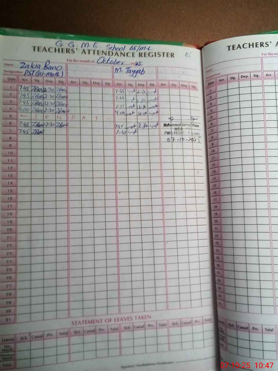 | Monitoring Date: 07-10-2025 | Start Time: 07-10-2025 10:17 AM | End Time: 07-10-2025 10:50 AM | Name of MEA: Mu**** As**** | |