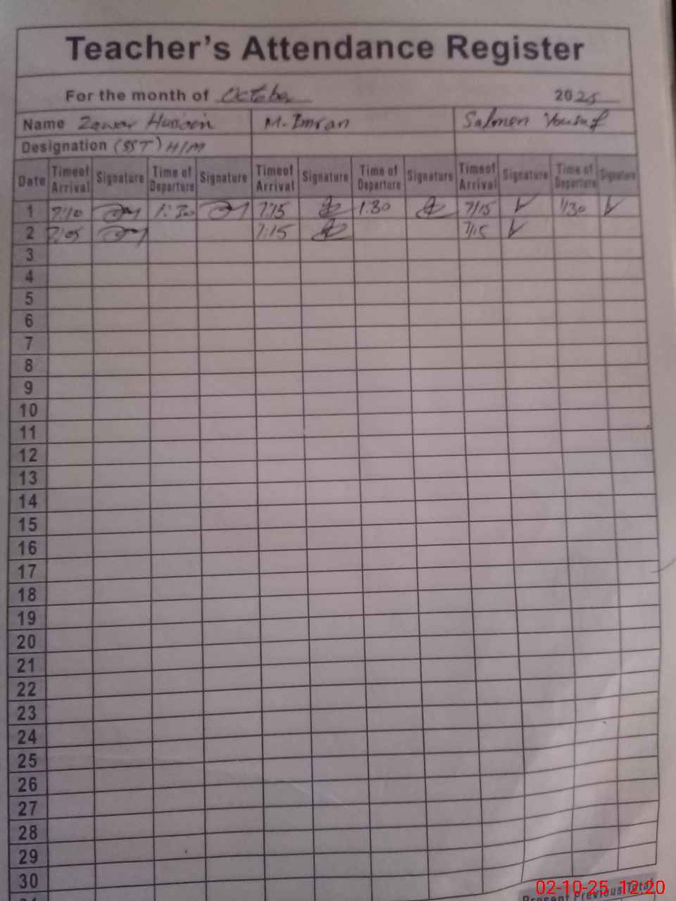 | Name: ZA**** HU**** Designation: (School Headmaster's/Headmistress's) S.st Phone/Cell Number: 03**** |
