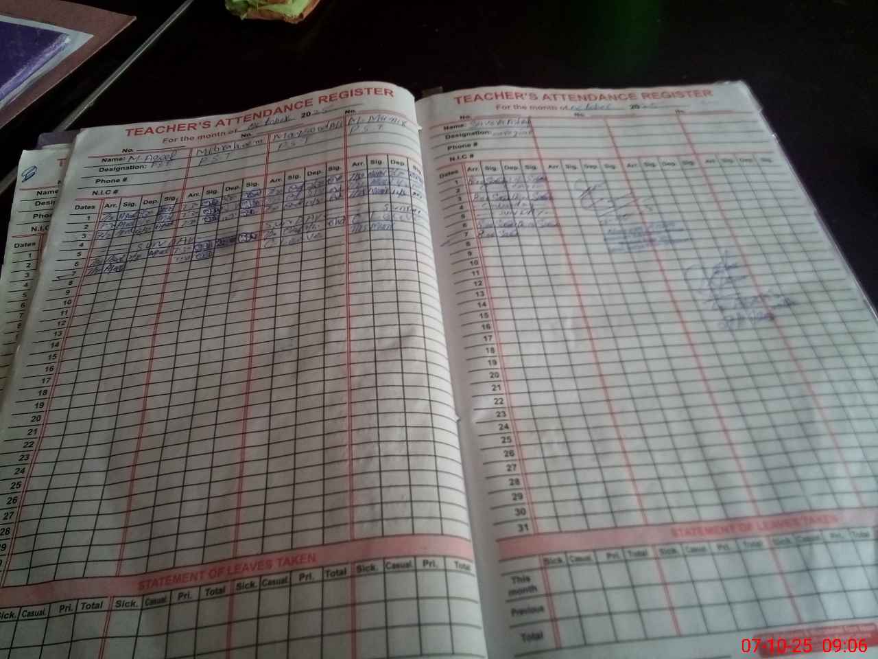 | CNIC | Full Name | Designation | R/C | Absence During Last Calender Month |