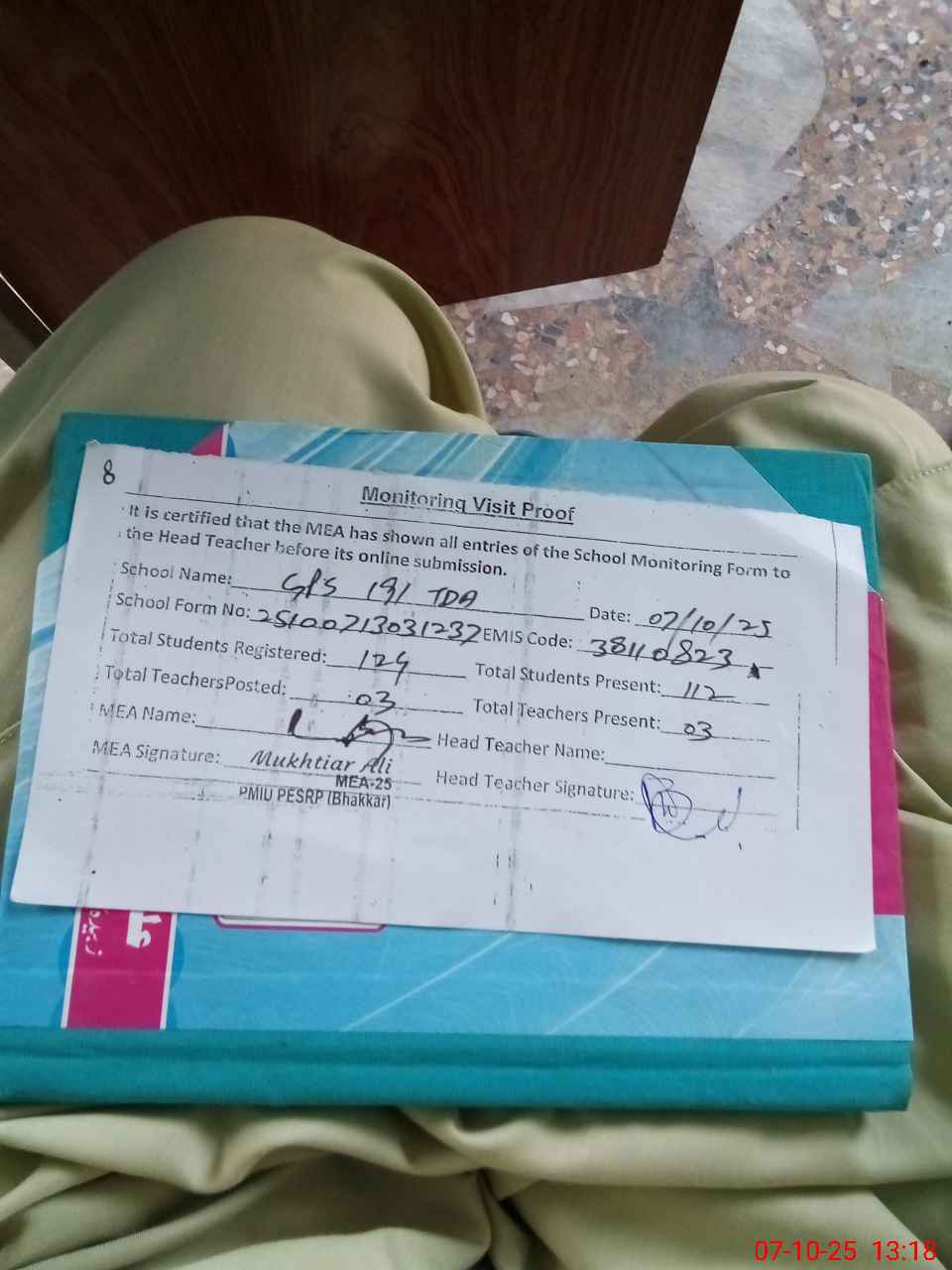 | EMIS Code: 38110823 | Name of School: GPS CHAK NO 191 TDA | |||