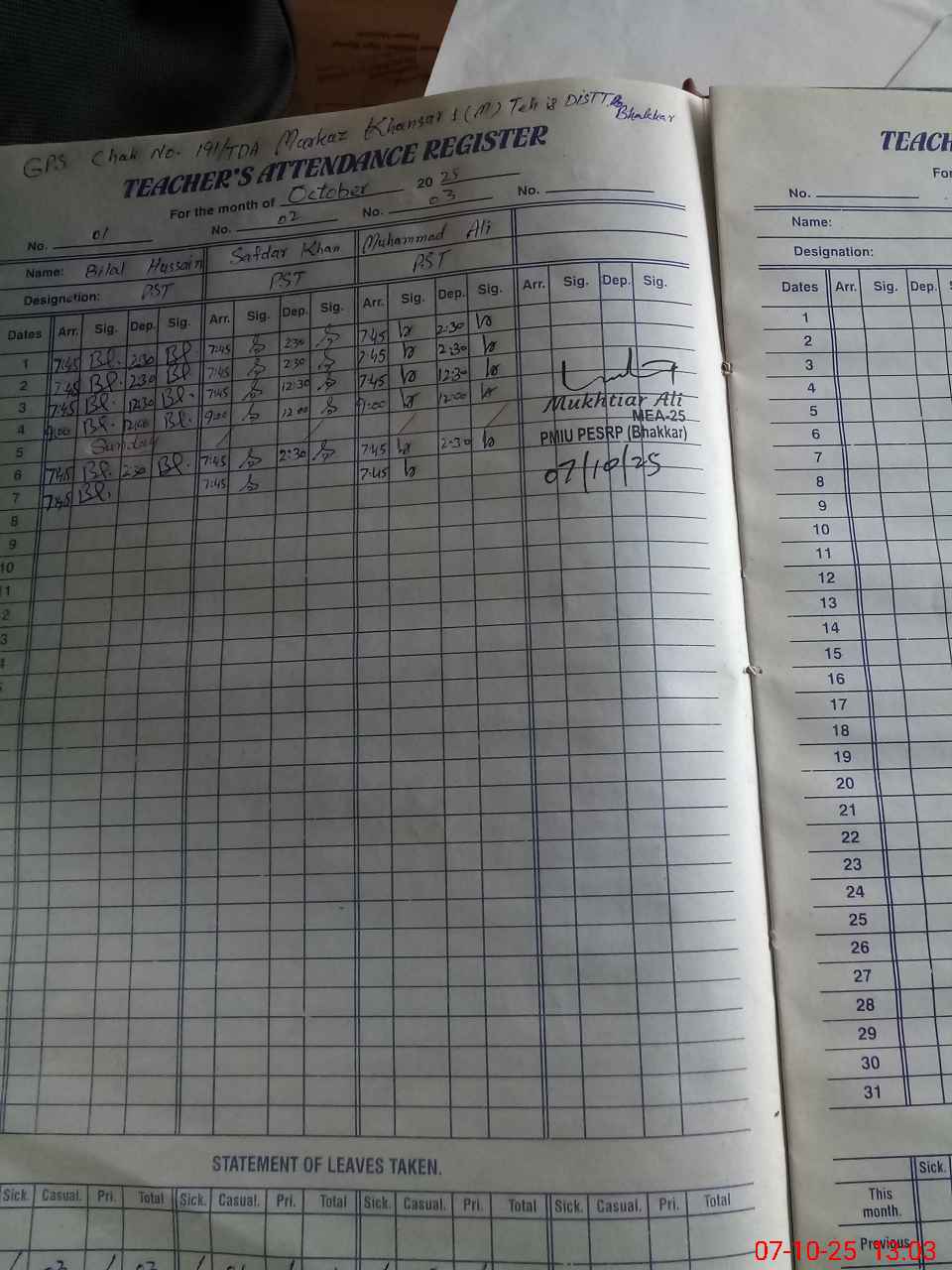 | Name: Za**** Hu**** Designation: (School Headmaster's/Headmistress's) PST Phone/Cell Number: 03**** |