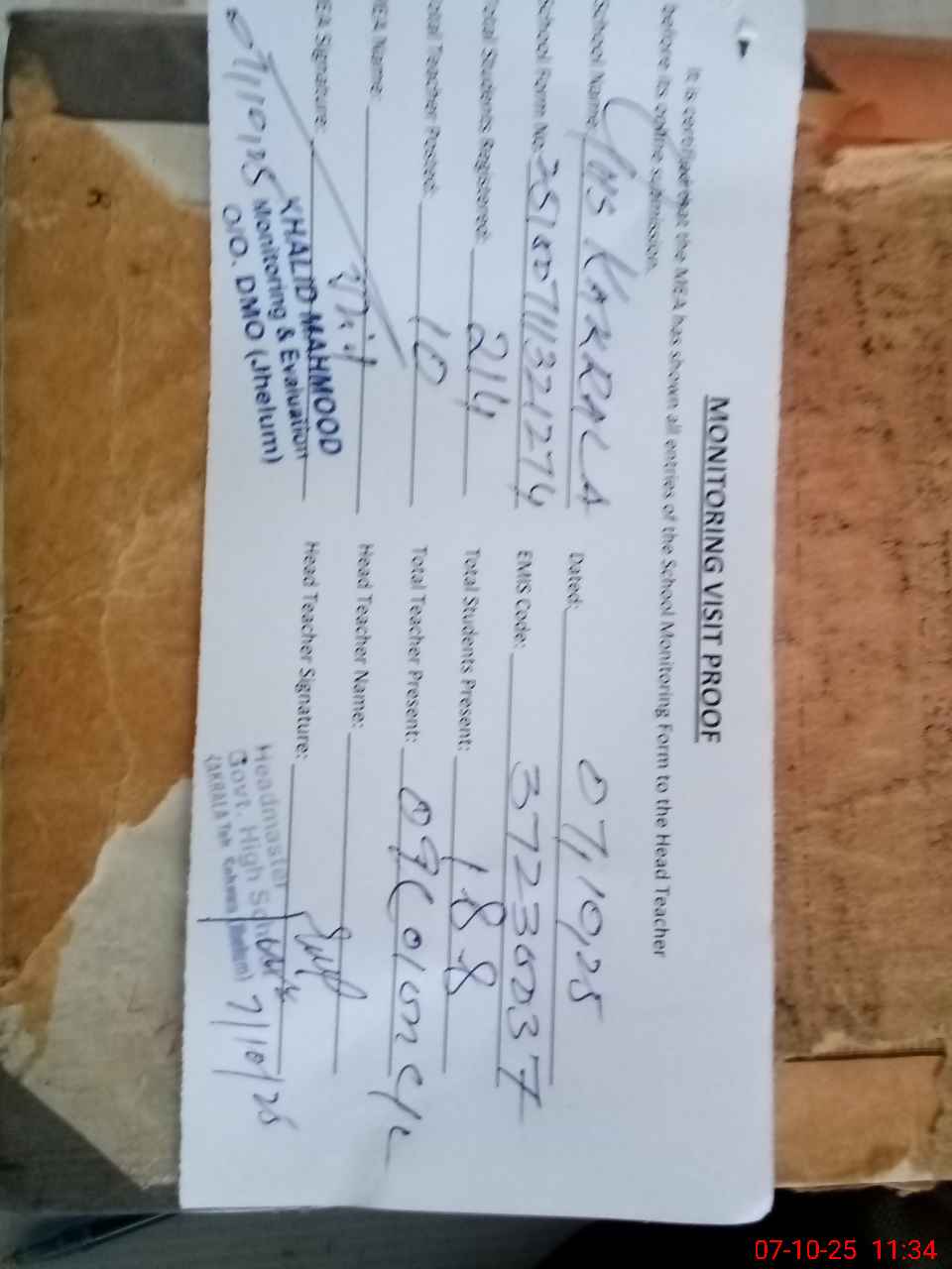 | Certified that this School was Inspected by the Undersigned MEA/DMO Today and the Information Stated Above is as Per Record. | |||||