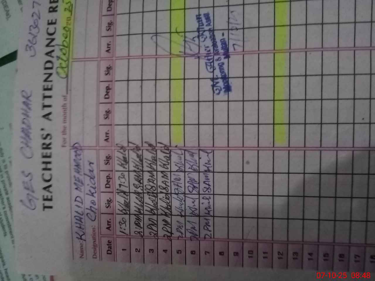 | Name: SA**** AH**** Designation: (School Headmaster's/Headmistress's) SST. GEN Phone/Cell Number: 03**** |