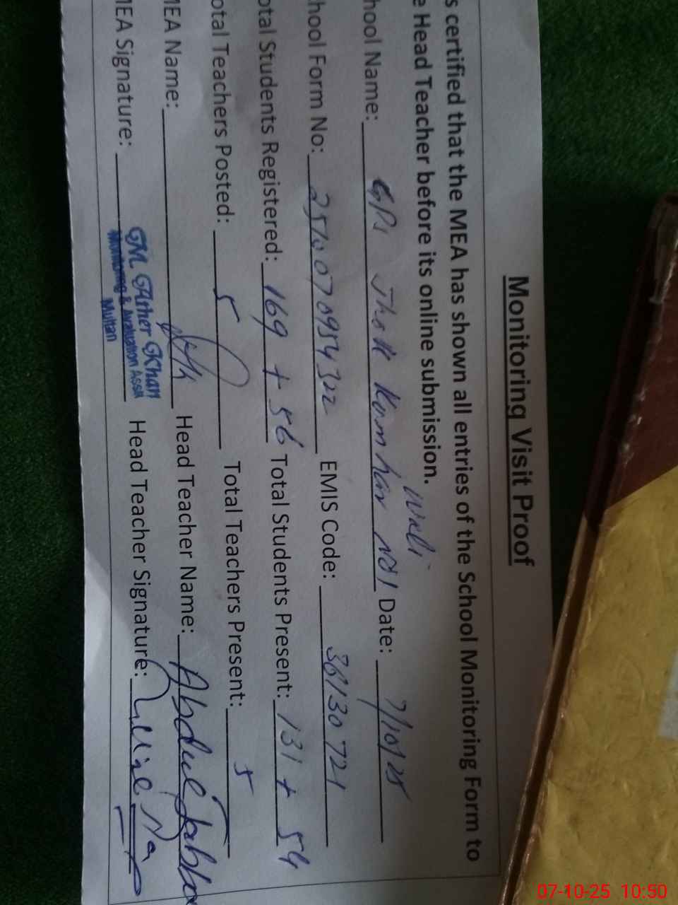 | Certified that this School was Inspected by the Undersigned MEA/DMO Today and the Information Stated Above is as Per Record. | |||||