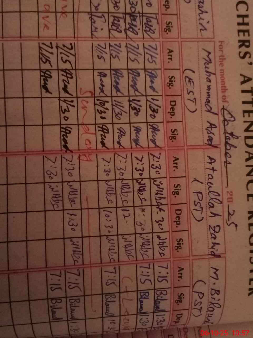 | CNIC | Full Name | Designation | R/C | Absence during last cal. month |