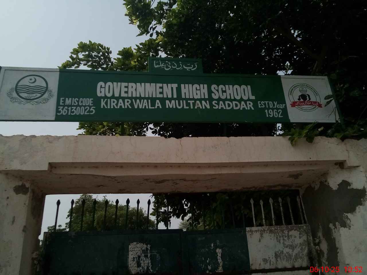 | EMIS Code: 36130025 | Name of School: GHS KIRAR WALA MULTAN | |||