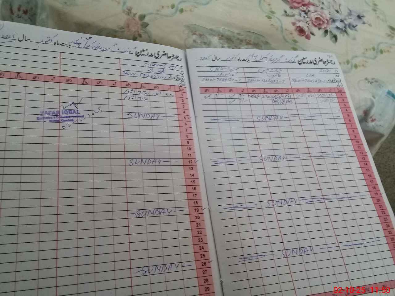 | CNIC | Full Name | Designation | R/C | Absence During Last Calender Month |