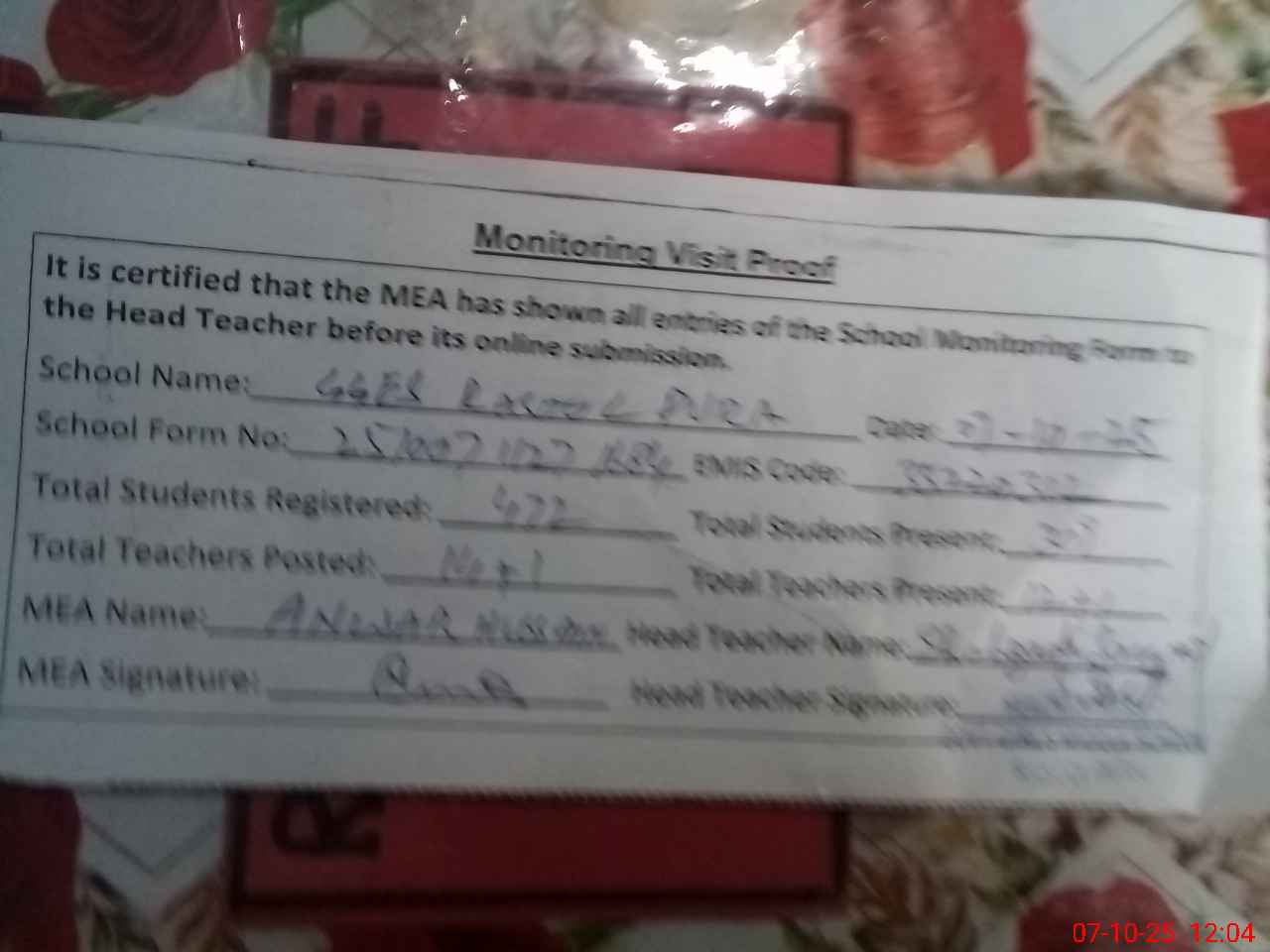 | EMIS Code: 35220312 | Name of School: GGES RASOOL PURA | |||