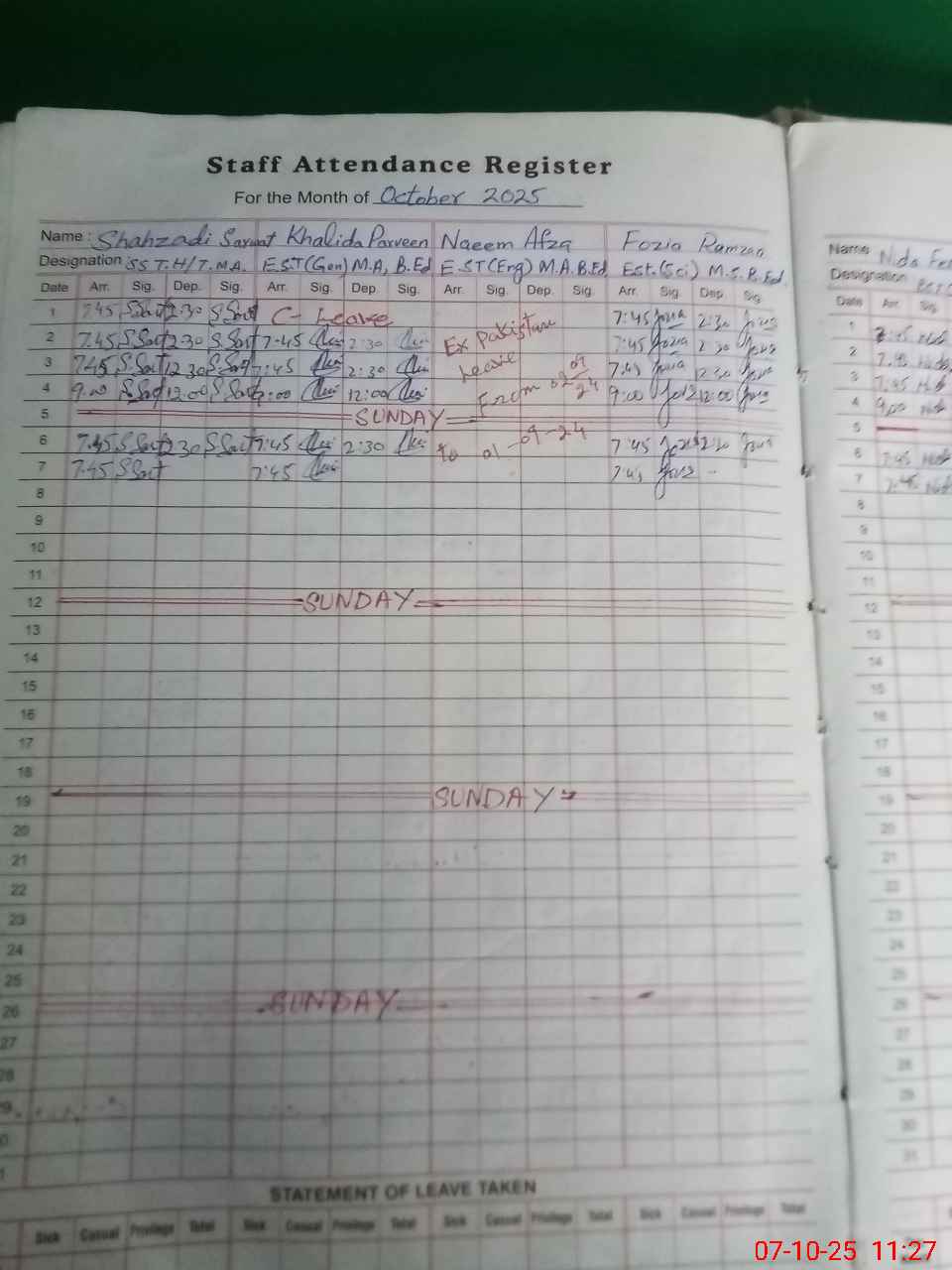 | Remarks (Use Separate Page if Required): 03 Classes sitting in corridor and 04 Classes in two rooms due to shortage of Class Room NSB account deactivated May 2025 to till date Khalid Mehmood SG Depoty office for official work entry available on order book 35220312 | |||||